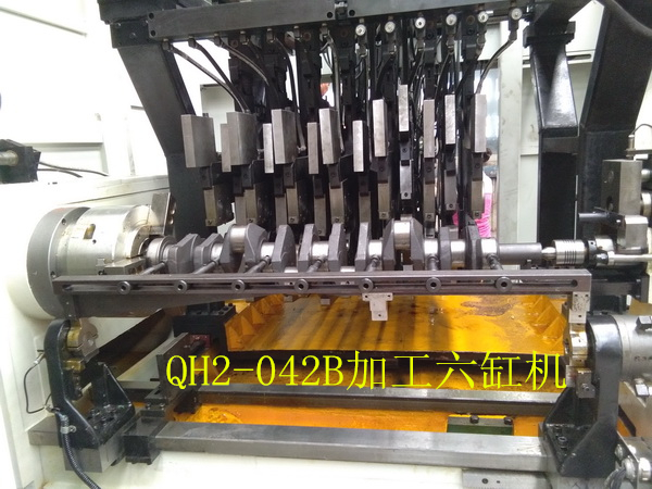 QH2-042變力曲軸圓角滾壓及滾壓校直機(jī)床(發(fā)明專利號1823602)是與武漢理工大學(xué)共同開發(fā)的一款高檔數(shù)控設(shè)備。該機(jī)床為九鉗直立布置,可以一次性對所有四缸曲軸完成的變力滾壓,自動檢測和自動滾壓校直的加工。該機(jī)床帶有測力器,自動檢測工件零位,自動檢測記錄工件加工情況和滾輪破碎自動檢測等功能,可以完全保證工件的加工質(zhì)量。具備與著名德國的圓角滾壓設(shè)備制造商Hegenscheidt公司產(chǎn)品同樣的功能,具有極高的性價(jià)比。